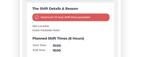 Provide system wide regulations to control worker safety or setup specific regulations for certain client policies or individual employees. The red alert icon will immediately alert the user to show that an exceedance is present and display the detail on hover.
