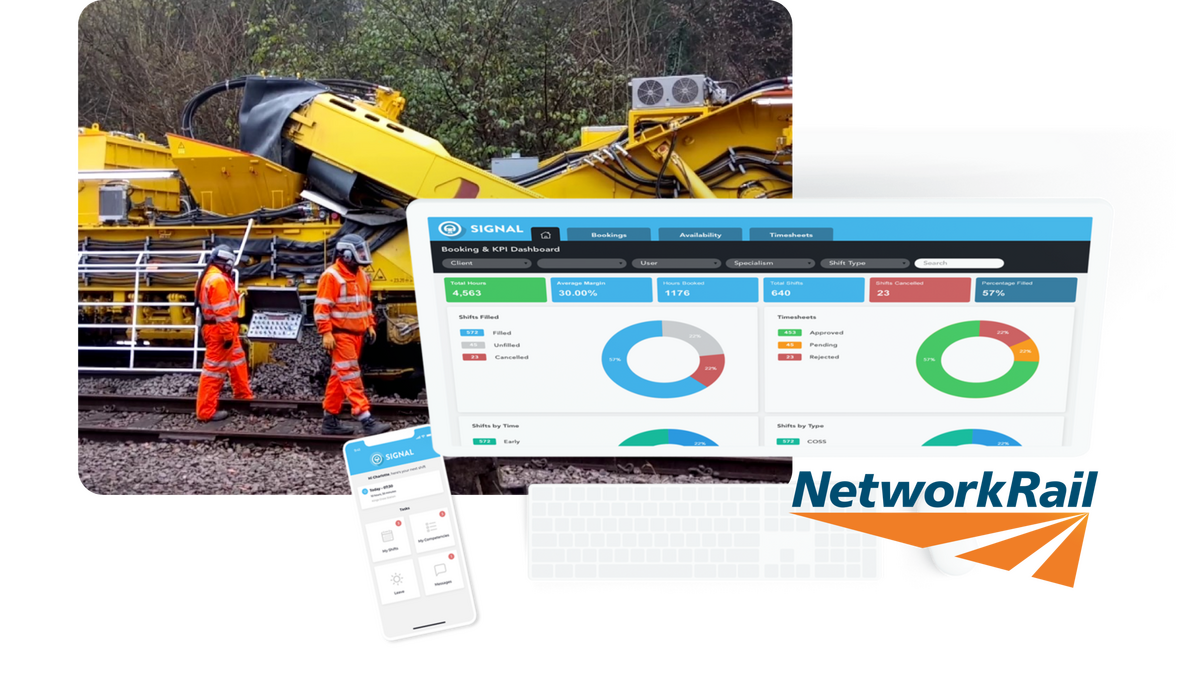 Signal was integrated with Network Rail's existing shift requisition software so that blank shifts are automatically created in Signal.